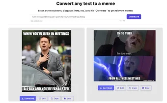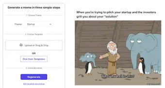 يمكن لـ مولّد الميمات الذي يعتمد على الذكاء الاصطناعي إنتاج إمداد لا نهائي من الميمات في بضع خطوات بسيطة. يمكن للمستخدمين إدخال نص يصل إلى 150 حرفًا بأكثر من 110 لغة، واختيار موضوع (على سبيل المثال، الناشئة، العملات الرقمية، المبيعات، الأجيل)، واختيار من بين مئات القوالب. بالنقر على "توليد"، سيتم إخراج ليس فقط ملفات GIF، كما يفعل GIF Brewery، بل أيضًا ميمات كاملة.